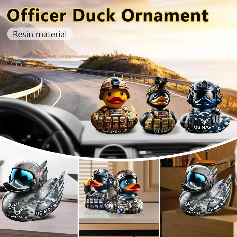 Military Duck Ornament Veteran Tribute Resin Duck Statue Gothic Sculpture Punk Animal Figurine Desktop Car Collectible Decor